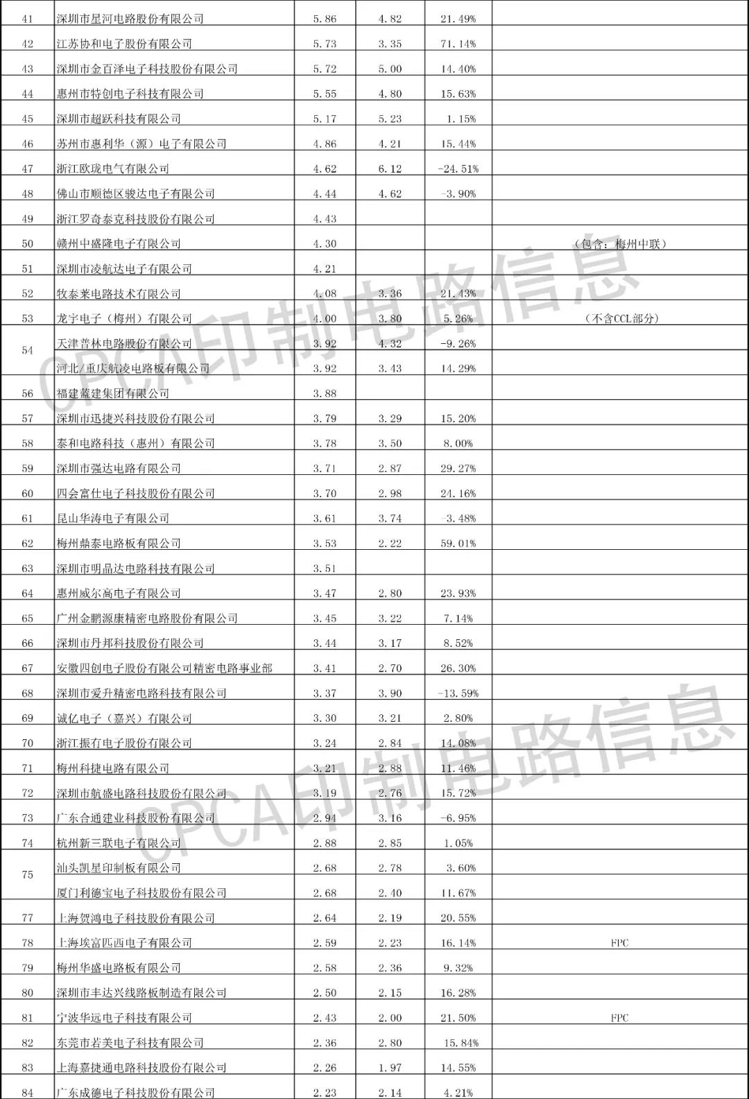 注:排行榜數據來(lái)源于CPCA印制電路信息