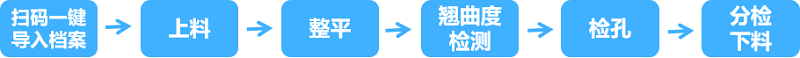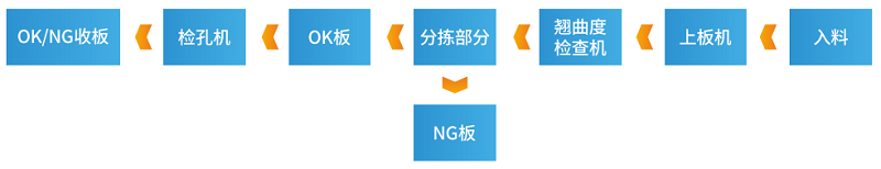 上板機+水平板翹反直機+板彎板翹檢查機+在線(xiàn)檢孔機+并聯(lián)機器人