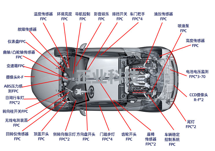 整車(chē)FPC用量將超過(guò)100片,動(dòng)力電池需求FPC數量與面積遠超原有整車(chē)車(chē)載FPC,新能源汽車(chē)的大發(fā)展帶動(dòng)車(chē)載動(dòng)力電池用FPC需求大幅增長(cháng)。