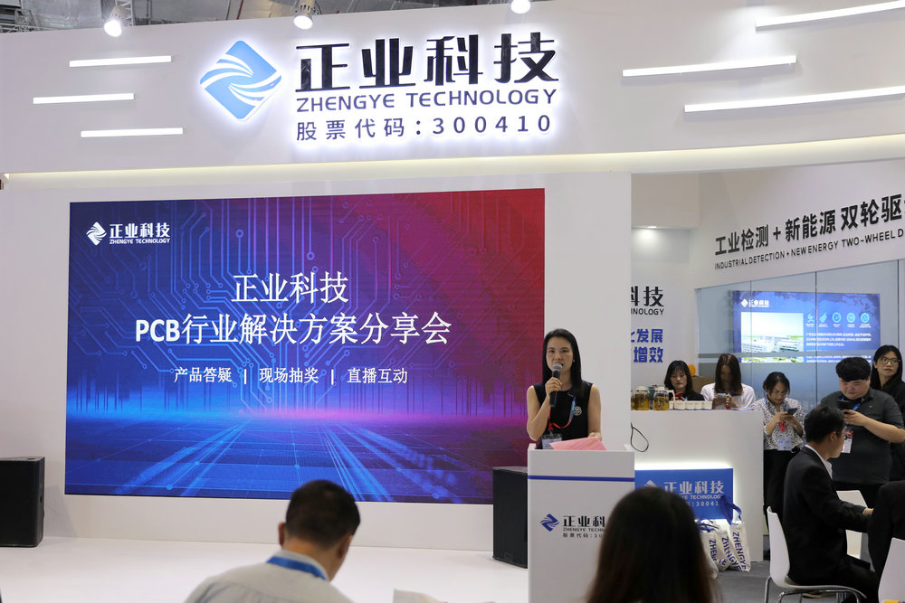 展會(huì )期間,正業(yè)科技精心籌備了多場(chǎng)次PCB行業(yè)解決方案分享會(huì ),線(xiàn)上同步直播,為現場(chǎng)觀(guān)眾呈現了一場(chǎng)PCB行業(yè)的饕餮盛宴,分別帶來(lái)了字符噴印、耐離子遷移覆蓋膜、PCB分板&X-Ray上料自動(dòng)化、激光加熱半固化片自動(dòng)化裁切、全尺寸快速測量、鍍層銅自動(dòng)檢測、PCB過(guò)濾、語(yǔ)音程控-10/20/30G帶寬高端TDR特性阻抗測試等解決方案的專(zhuān)題演講,充分詮釋了正業(yè)科技在PCB行業(yè)的匠心智造。希望通過(guò)這些解決方案的引入和應用幫助業(yè)界同仁解決產(chǎn)品在設計和制造中遇到的問(wèn)題,共同推動(dòng)PCB行業(yè)實(shí)現高質(zhì)量發(fā)展。