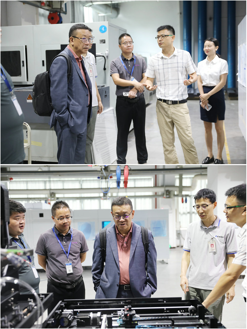 接著(zhù),姜旭高博士參觀(guān)了公司的設備車(chē)間,近距離了解我司的自動(dòng)化和檢測設備相關(guān)情況,對正業(yè)科技整體的技術(shù)布局、設備的先進(jìn)性、創(chuàng )新性等表示高度認同和贊揚。