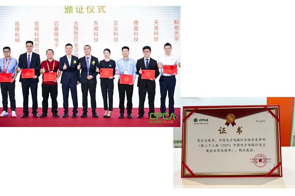 此外,正業(yè)科技榮登中國電子電路行業(yè)協(xié)會(huì )發(fā)布的《第二十三屆(2023)中國電子電路行業(yè)主要企業(yè)營(yíng)收榜單》,特此發(fā)證。