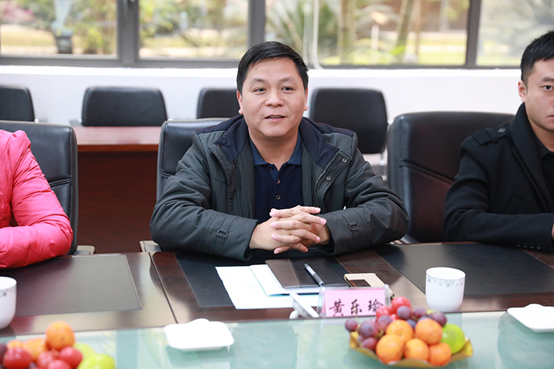 ▲ 市場(chǎng)中心總監林克向黃樂(lè )瑜書(shū)記介紹我司最新技術(shù)成果