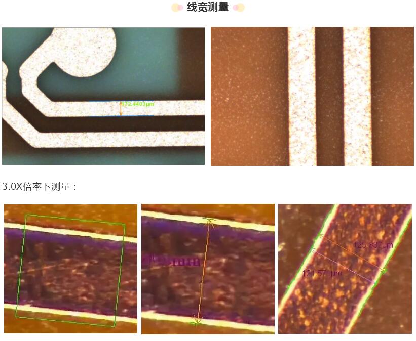 正業(yè)線(xiàn)寬測量?jì)x主要應用于印刷電路板內、外層半成品經(jīng)顯影蝕刻后(上綠油前)線(xiàn)路的上幅及下幅寬度、線(xiàn)距、圓孔(相機視野范圍內)的檢測及品質(zhì)分析。