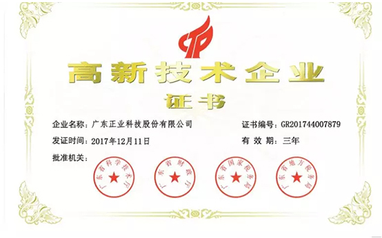 廣東正業(yè)科技股份有限公司憑借雄厚的核心技術(shù)實(shí)力再次榮獲由廣東省科學(xué)技術(shù)廳、廣東省財政廳、廣東省國家稅務(wù)局、廣東省地方稅務(wù)局聯(lián)合頒發(fā)的高新技術(shù)企業(yè)證書(shū)。