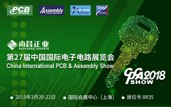 第27屆中國國際電子電路展覽會(huì )將于2018年3月20-22日在上海國際會(huì )展中心隆重開(kāi)展,廣東正業(yè)科技股份有限公司旗下子公司南昌正業(yè)誠邀您參加第27屆中國國際電子電路展覽會(huì )。